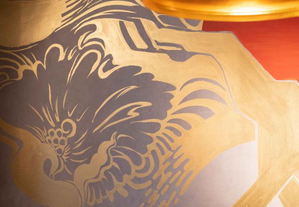 Shukuhonjin Yukimura is a whole-house rental accommodation inspired by the famous Sengoku warlord from Osaka, Sanada Yukimura. It was created by renovating a more than 100-year-old traditional Japanese house. The interior is unified with the signature red color of Sanada Yukimura. The walls feature depictions of the battle between Sanada Yukimura and Tokugawa Ieyasu, drawn by the popular sumi-e artist Gokahead, known for collaborations with famous anime such as Pokémon and One Piece. The meticulously designed inner garden is also a highlight. The bath, featuring natural stones from Aomori Prefecture, is a luxurious addition. Everything, from lion-shaped roof ornaments to ceramic bath furnaces, sticks to the concept.